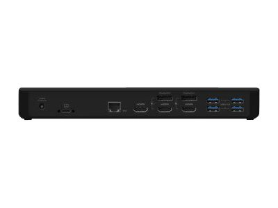 Affichez des résolutions vidéo jusqu'à 4K sur un maximum de trois moniteurs avec la station d'accueil universelle USB-C pour triple affichage. Sa technologie DisplayLink permet de connecter facilement vos moniteurs à n'importe quel ordinateur, notamment les MacBook, Chromebook et ordinateurs portables Windows. La station d'accueil est dotée de plusieurs ports vidéo - 2x DisplayPort et 3x HDMI - pour des connexions vidéo pratiques et flexibles. Accédez à tous les périphériques dont vous aurez besoin grâce à 5 ports USB-A et un port USB-C, ainsi qu'à Gigabit Ethernet, une entrée/sortie audio 35 mm et jusqu'à 85 W d'alimentation USB-C PD.