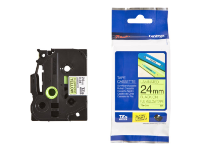 Grâce à notre technologie de laminage brevetée, conçue pour résister aux températures extrêmes, à l'eau, à la lumière du soleil et à l'abrasion, vous pouvez utiliser le ruban pour étiqueteuse TZe-C51 Brother noir sur jaune fluorescent en toute tranquillité : le texte ne s'estompera pas.