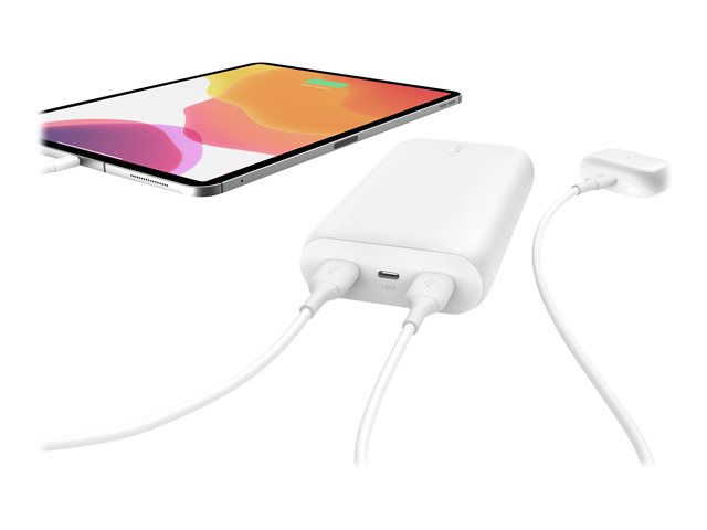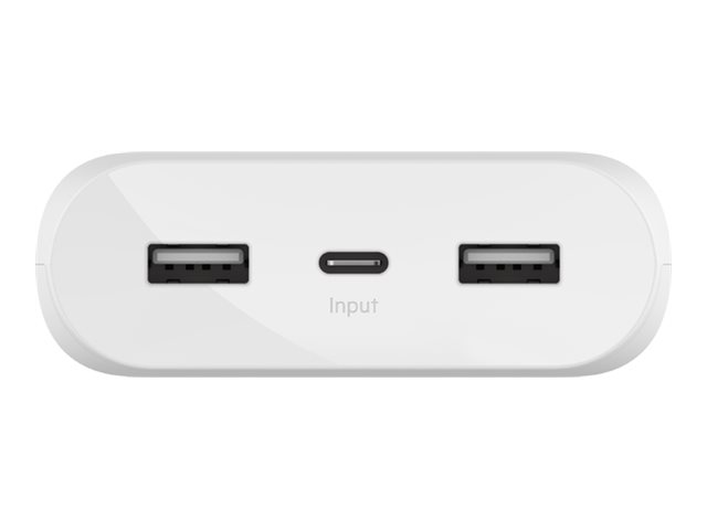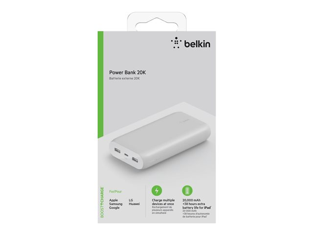 Belkin BOOST CHARGE - Banque d'alimentation - 20000 mAh - 3 connecteurs de sortie (USB, 24 pin USB-C) - sur le câble : USB, USB-C - blanc