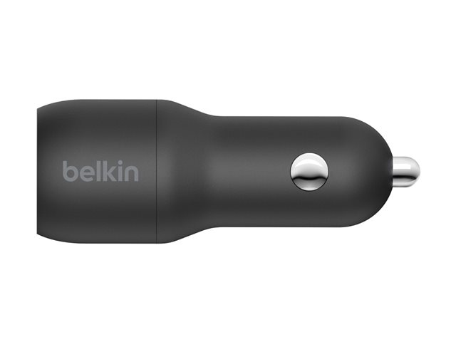 Le chargeur de voiture Dual USB-A Belkin BOOST?CHARGE (24 W), CCB001 est un chargeur de voiture à double port de 24 W. Il peut charger deux appareils sur ses ports USB-A jusqu'à 12 W chacun.