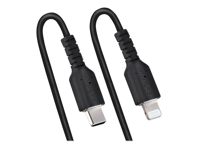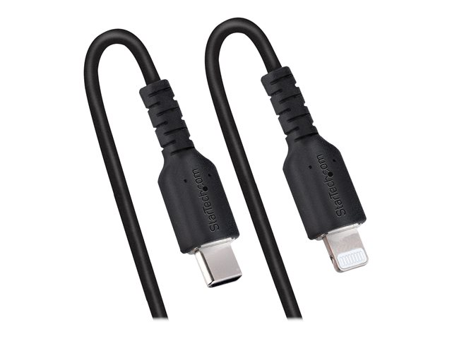 StarTech.com Câble USB-C vers Lightning de 1m - Adaptateur USB C vers Lightning Noir Certifié Mfi, Gaine en TPE - Câble USB Type-C/Lightning - Chargeur USB-C vers Iphone (RUSB2CLT1MBC) - Câble Lightning - 24 pin USB-C mâle pour Lightning mâle - 1 m - noir - bobiné