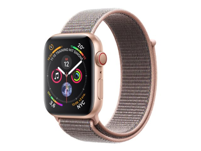 Apple Watch Series 4 (GPS + Cellular) - 40 mm - or-aluminium - montre intelligente avec boucle sport - nylon tissé - sable rose - taille de bande 130-190 mm - 16 Go - Wi-Fi, Bluetooth - 4G - 30.1 g