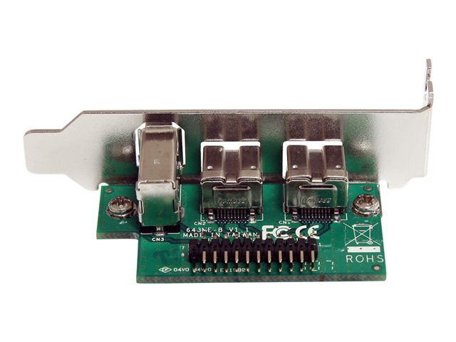 La carte FireWire Mini PCI Express 3 ports MPEX1394B3 est un adaptateur PCI Express vers FireWire-800/FireWire-400 qui vous permet d'ajouter une connectivité FireWire externe à des systèmes très compacts ou intégrés. La carte FireWire PCI-E offre deux ports FireWire-800 et un port FireWire-400. Cette carte prend en charge les derniers périphériques de stockage FireWire externes à des vitesses de transfert pouvant atteindre 800 Mb/s. Utilisant le format Mini PCI Express (mini carte), cette carte a été conçue pour être utilisée dans les systèmes informatiques compacts les plus récents, comme Mini-ITX ou les solutions intégrées personnalisées dans lesquelles une carte PCI Express normale ne pourrait pas se loger. Bénéficie de la garantie StarTech.com de 2-ans et de l'assistance technique à vie gratuite.
