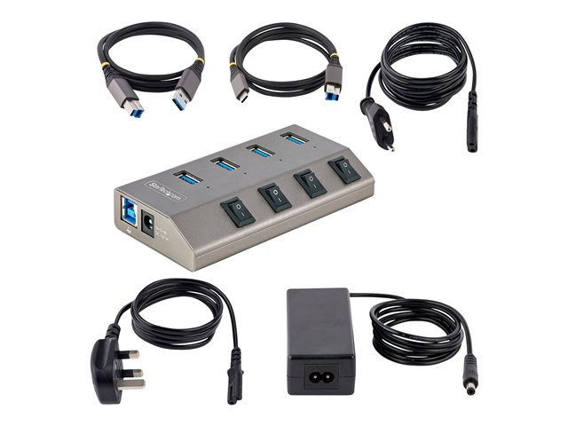 StarTech.com 4-Port Self-Powered USB-C Hub with Individual On/Off Switches, USB 3.0 5Gbps Expansion Hub w/Power Supply, Desktop/Laptop USB-C to USB-A Hub, 4x BC 1.2 (1.5A), USB Type C Hub - USB-C/A Host Cables (5G4AIBS-USB-HUB-EU) - Concentrateur (hub) - 4 x USB 3.2 Gen 1 - de bureau 5G4AIBS-USB-HUB-EU